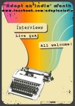 Also starting next week Adopt An Indie rolls out. This is a fantastic event put together by Donna Brown to promote independent authors and books, bloggers, reviewers and readers, so we’ll be talking about that as well as.