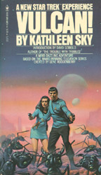 4) Vulcan! by Kathleen Sky. This was Sky’s first Trek novel, and introduced the Sigmund idea (psychological testing I am all for but I think it may need a better name. But perhaps, to paraphrase, a name is just a name).