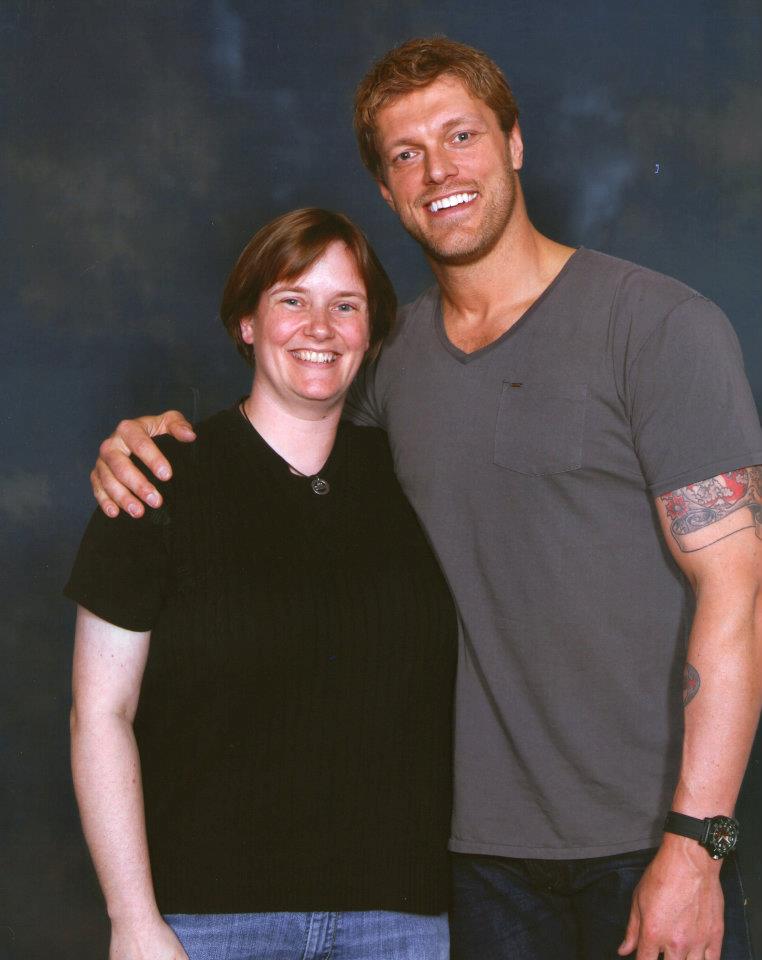 Sue got to say hi and have her photo taken with the Vampire Diaries guests, and then was completely gob-smacked by The Edge, like a giddy school-girl . I should make clear right now, that neither Sue nor I are wrestling fans, but we are huge Haven fans, and he seemed absolutely delighted that we were interested in that and his acting career.