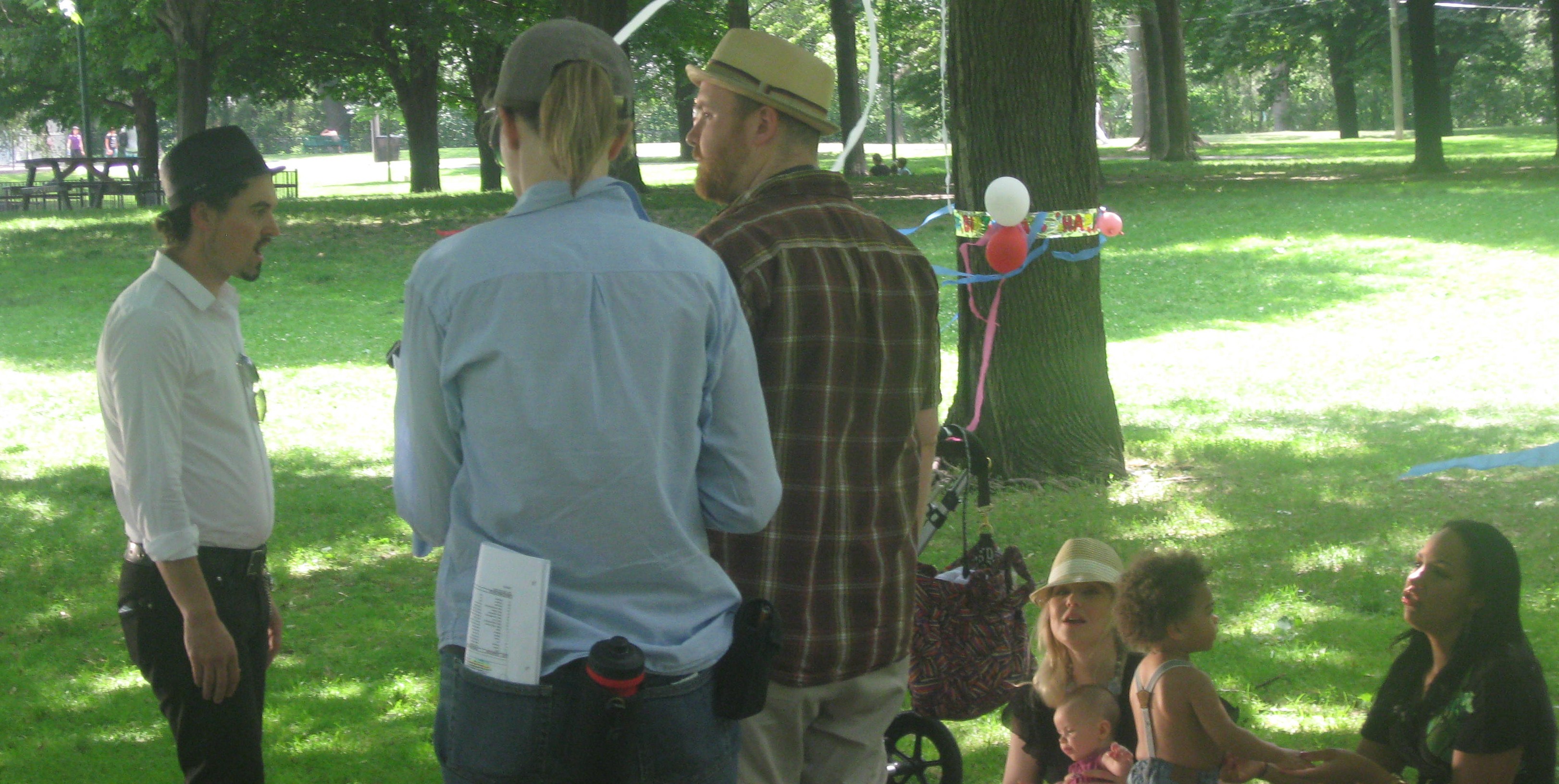 I arrived just before 10 in the morning and learned that most of the cast and crew had been up and about since about 6, and on set before 7am! Greeted by Jennifer Liao, who shares producing credit with Jeremy (who also wrote the film) I grab a chair by the production tent, and settle in to watch, from a distance, as Jeremy and his crew work with Zoie and Paul as they film a scene of the two of them strolling through a park talking.