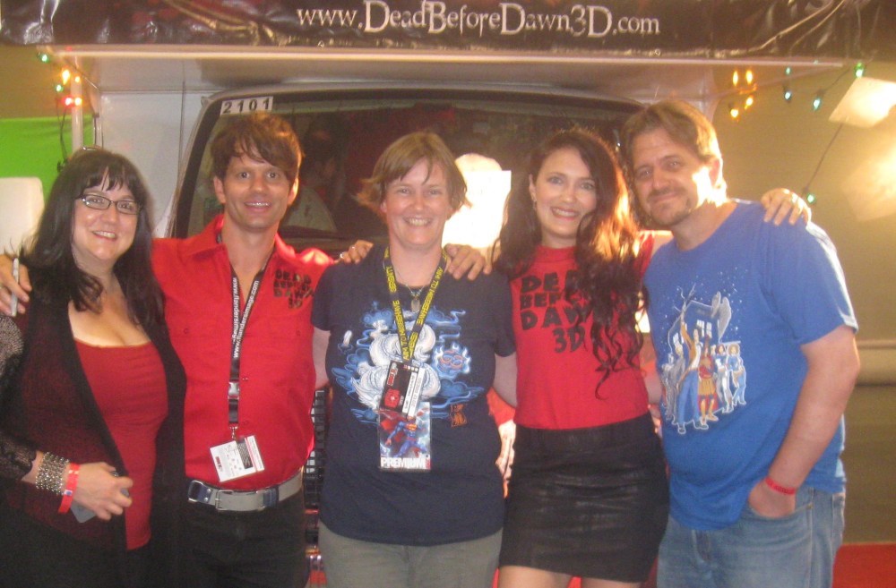 It is here, that the director and members of the cast of the film Dead Before Dawn 3D have taken up residence for the weekend. It’s great to see our friends Tim Doiron and April Mullen again, and honestly, I love watching the movie trailer over and over again, because I’m in it! But in all honesty, this film looks so good, and I can’t wait to see the finished product. Make sure you check their booth out over the weekend as Devon Bostick will be on hand for an autograph session.