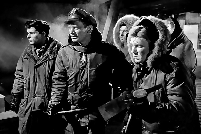 Captain Hendry (Kenneth Tobey) and his flight crew, including a newspaperman named Scott (Douglas Spencer) are summoned to the North Pole from Anchorage, Alaska, when a scientific outpost detects the impact of a large aircraft.