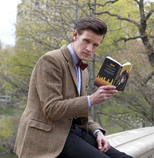 We find the Doctor (Matt Smith), Amy (Karen Gillan) and Rory (Arthur Darvill) spending a quiet afternoon in Central Park, New York. The Doctor is quite engrossed in a book, reading aloud, to Amy’s consternation, and Rory sprints off to fetch coffees after agreeing about not noticing lines around Amy’s eyes.
