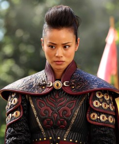 As usual, this episode flashed back and forth between our world and fairy tale land, giving us some backstory on how things were, and what’s going on now. In town, there was an immediate burn-the-witch hunt for Regina (Lana Parilla), which Henry convinced Emma, Snow and Charming (Josh Dallas) to stop if they could. She may be the Evil Queen, but she is, after all, still his mom. Emma managed to lock Regina up – for her own safety – and sent the angry townsfolk away. We’re also introduced to Aurora/Sleeping Beauty (Sarah Bolger), who is awakened by the kiss of her true love, Prince Philip (Julian Morris). Just before waking her, however, Philip comments to his mysterious companion that they won’t “tell her everything right away”, and we are left to ponder what that means as the rest of the episode progresses. We do find out, however, that the oddly-clad warrior he’s been travelling with in search of Aurora is, in fact, Mulan (Jamie Chung) – and it’s possible that she is in love with him, as well.