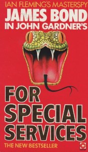 And there on one end of the 4 sided rectangular wire rack that served as the book section of the Canadian Exchange on the base, was a red covered book, with a fearsome looking snake head (not a good sign, cause you know, snakes… ugh) but above it was the name James Bond, and below it, a very spy sounding title – For Special Services. And I learned two things there and then, the original creator of the character Ian Fleming, and that they were still writing James Bond books, and some guy named John Gardner was doing it!