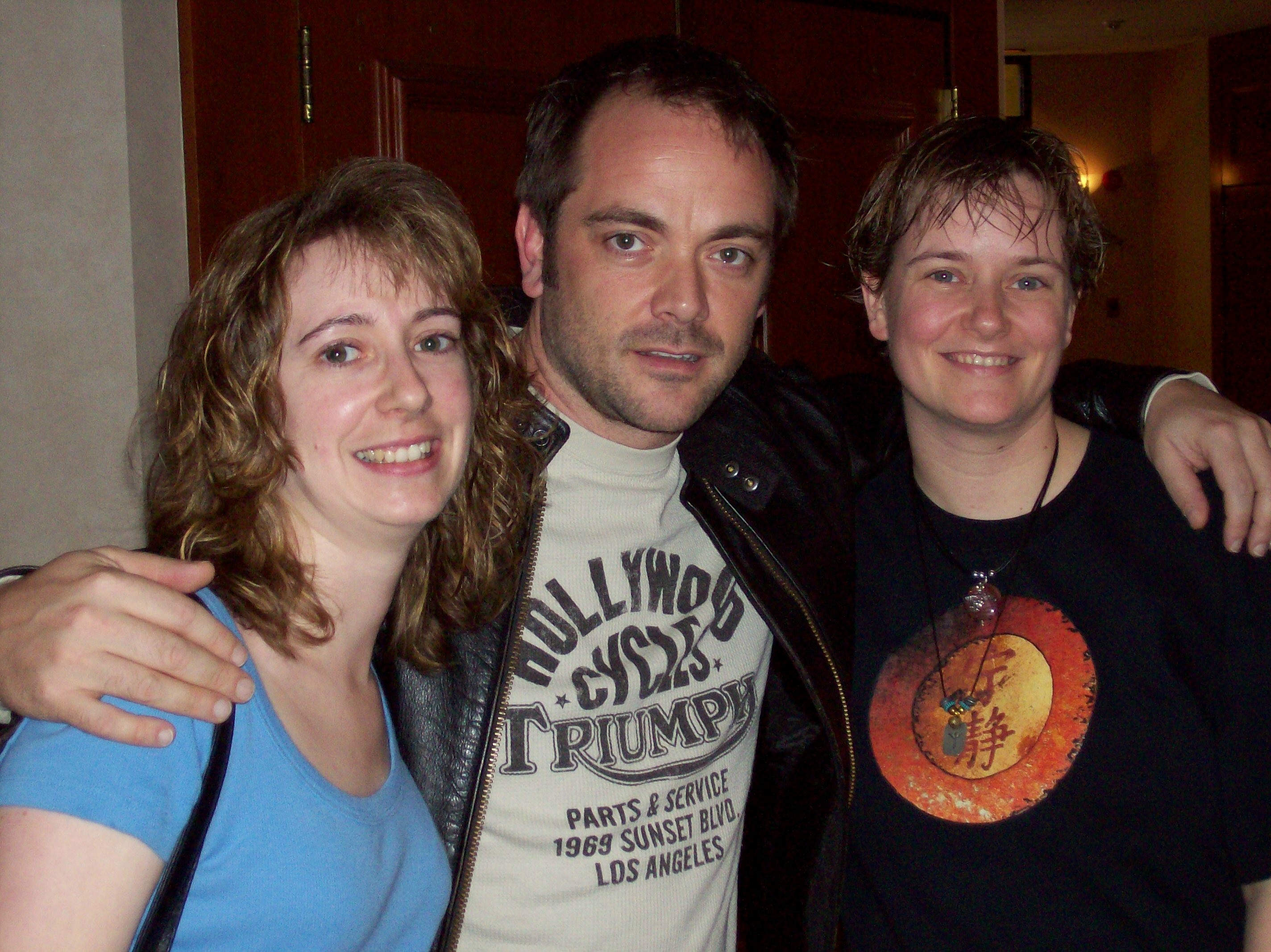 The next morning, according to the new plan, we were all to assemble in the lobby to learn the details of what was coming up for the weekend.  While having breakfast ahead of time, it was announced that we had “a Badger in the lobby”.  Mark Sheppard was there, hanging out and posing for pictures.  He would become a staple for much of the experience, in fact.  That night, we got all dressed up and took over the hotel bar one so that we could still have the cocktail party we were denied by the con-cancellers.  Mark was back, and Jonathan Woodward (Tracy) also turned up for the evening.  Then suddenly, our Captain, Nathan Fillion (Malcolm Reynolds) was there, handing out items from his own house as prizes and to make us feel better about being there.  I guess he didn’t realize that all it took to make us happy was for him to show up.  🙂