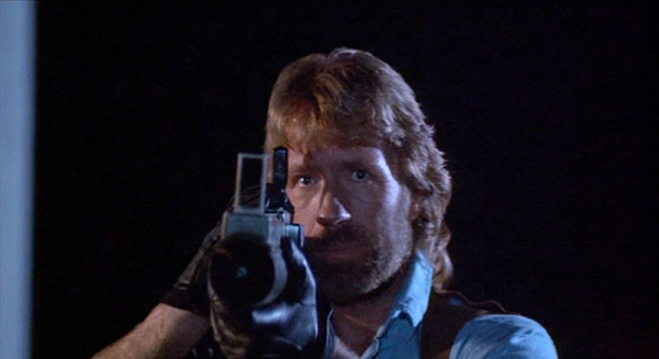 Armed with dual micro Uzis hanging from a converted underarm holster, Norris, as ex-CIA operative Matt Hunter is trying to single-handedly stop a terrorist invasion of America.