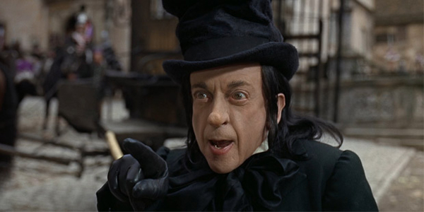 It also has something that has stayed with me since childhood, and the first time I saw it… the Child-Catcher (Robert Helpmann), There’s something about him that frightened me as a kid, the thin face, the angular jutting nose, the undertaker’s attire, his hunt for children with his prowling walk and net with his horse-drawn cage.