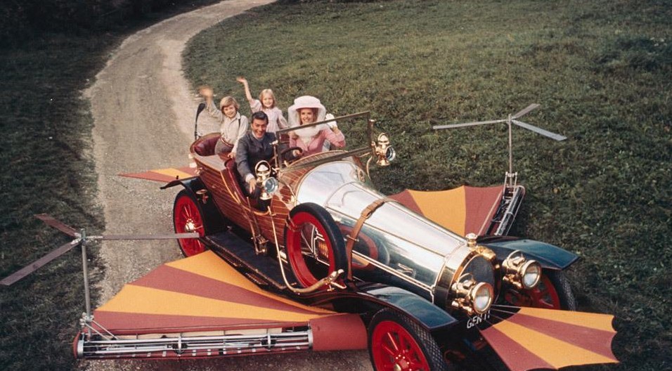 Dick Van Dyke takes the lead as eccentric inventor Caractacus Potts, a single father of two children, Jemima (Heather Ripley) and Jeremy (Adrian Hall), who all share a rustic farmhouse and windmill with Potts’ equally eccentric father, Grandpa Potts (Lionel Jeffries).