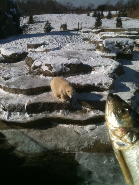 In short, the fabulous Jeff Young, on behalf of the wonderful Toronto Zoo, invited us to throw some fish to Hudson during the polar bear Keeper Talk on his last day!