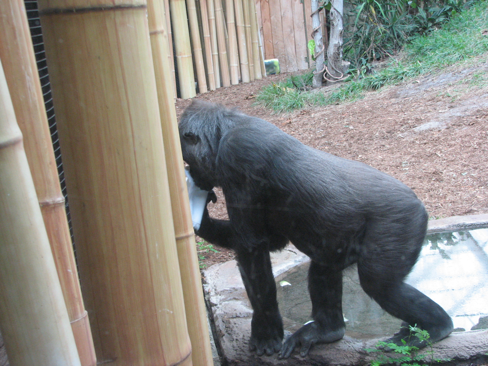 I swear – and Tim saw it, too – one of the girls (I think? I can’t tell them apart yet) made her way over to a side area where a Keeper had something for her. I believe she ate a piece of food, was handed a small towel or napkin-like object – and then wiped her lips with it before sitting in front of where we were standing at the window! I’m almost certain of it! I actually told Tim that I wished we could just go into the zoo and sit with the gorillas and, like, read a book, or something. Do something quiet, and just be around them. They’re so peaceful and calming to me. I always feel better being around them. Just, not usually when there are a bunch of other people around, because they are NOT calming to me! Lol