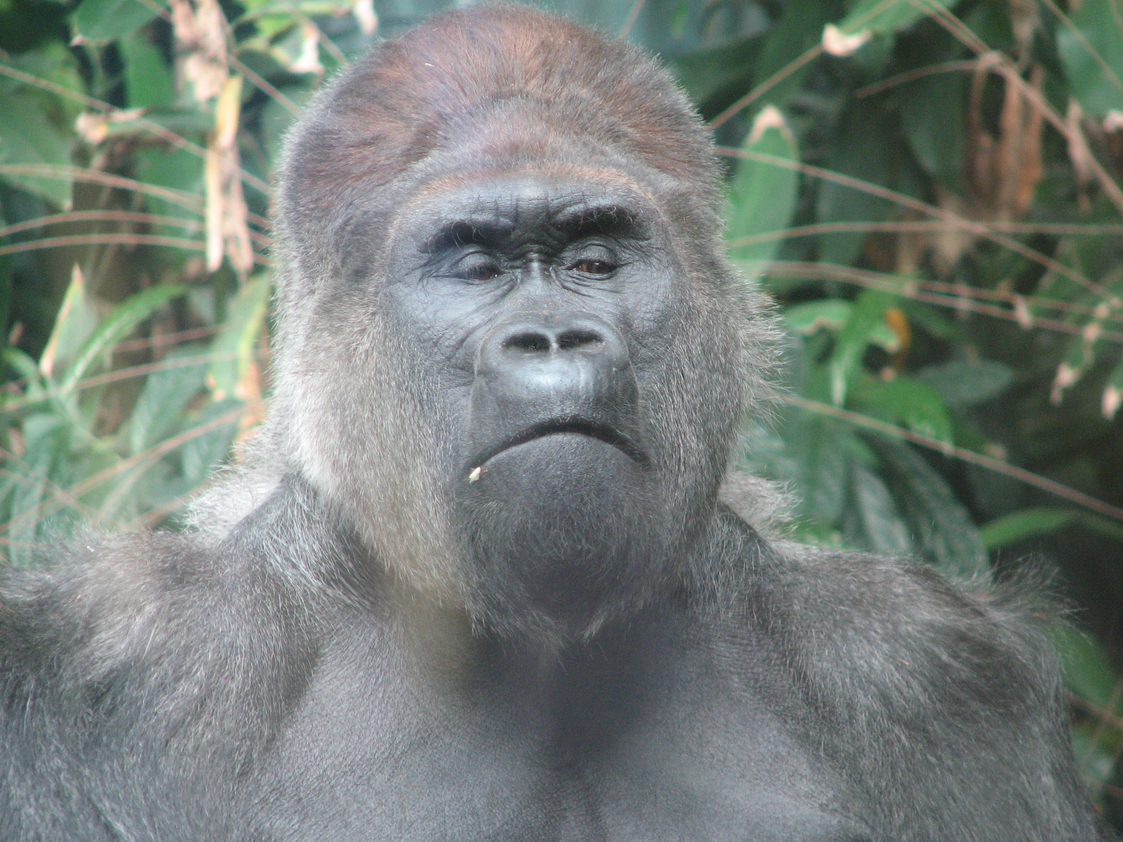 And the gorillas! Charles was sitting in a bucket of his own over by a window when we went in! I’d never seen him that close up before! By his facial expression, I am pretty sure he was lamenting the state of the human race, but…what an experience, being in the presence of such a wonderful, intelligent creature. It was overwhelming. We’d gotten to that pavillion shortly after they’d been fed, too, so we were able to watch young Nassir work treats out of a tube filled with holes, too. He took a break to see what his dad was up to when Charles was on the move at one point, but mostly he just hung out and worked for his reward.