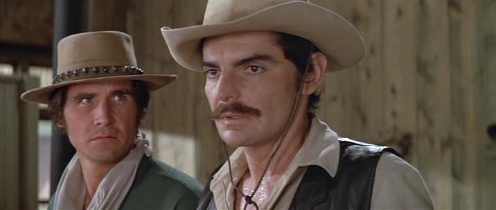 Peter (Richard Benjamin) and John (Brolin) take a holiday in Delos, deciding to visit West World. John’s been before, and had a great time, and has finally convinced Peter the lawyer to come with, while he moons over his ex-wife. John settles into the world right away, enjoying it to the full. It isn’t until after Peter’s first confrontation with the Gunslinger, that he begins to get into it – shooting the robot down. The duo start to enjoy themselves, playing cards, carousing with the ladies, and drinking in Miss Carrie’s (Barrett) place. Brolin is a delight in these sequences, he constantly has a grin in his face and laughs a lot. He looks like he’s having a really good time.