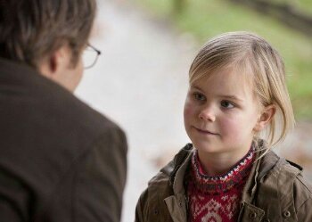 The kids even interact with him outside of the daycare, especially Theo’s adorable daughter Klara (Annika Wedderkopp) who has taken a fancy to Lucas’ dog Fanny, and eventually him, making him a small gift. In a completely unnerving moment, while Lucas is playing dead, she throws herself at him, kissing him full on the lips.