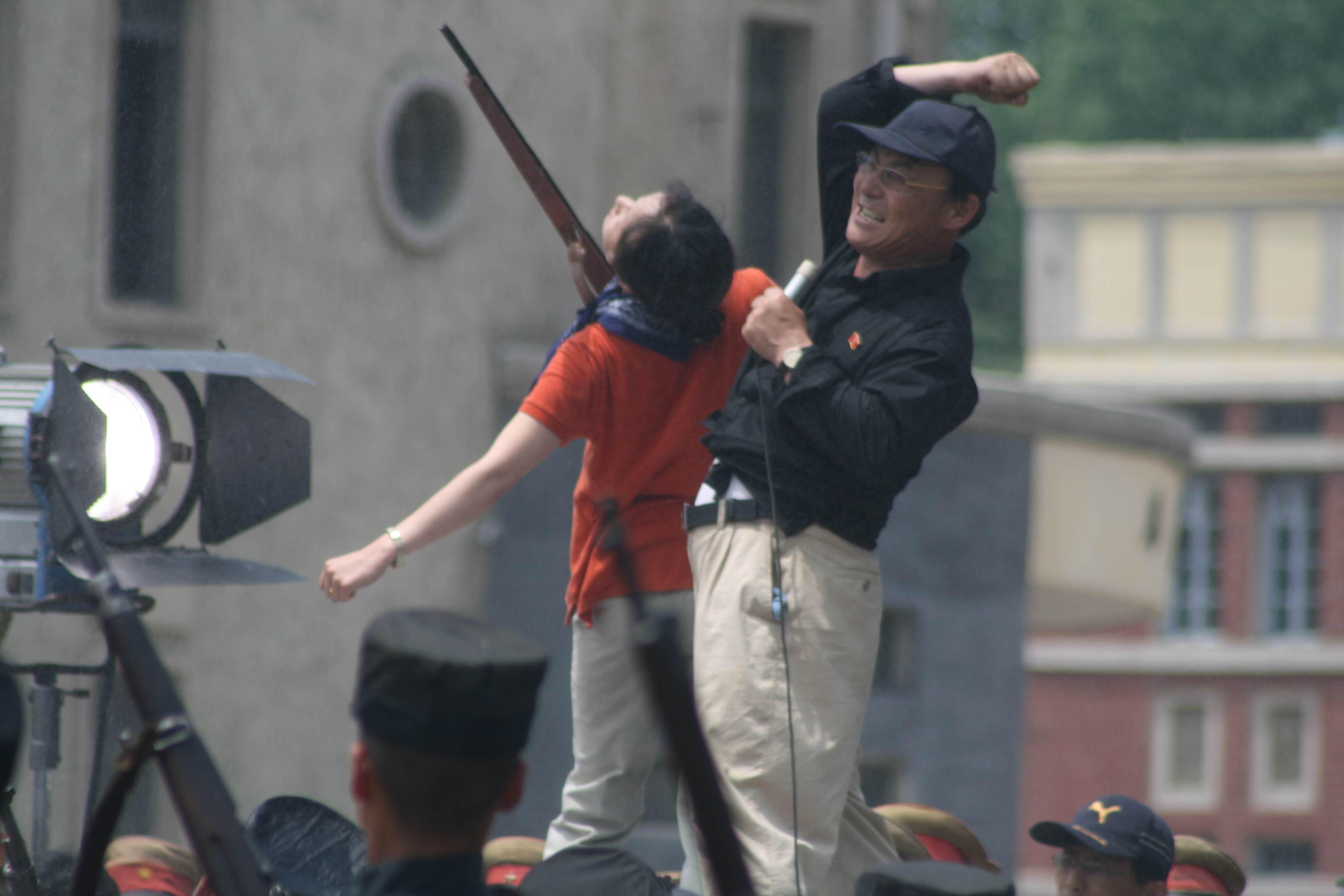 There is the director Pyo Hang who is hard at work on his new film which coincides with the 50th anniversary of a forced disbanding of the Korean army by the Japanese, and he’s working at getting the right emotions from his cast of extras (all soldiers and not actors by any stretch of the imagination). He doesn’t understand how none of them can properly portray the moments required, and puts them through their paces constantly, demonstrating over and over again what he wants all while berating them for smiling.
