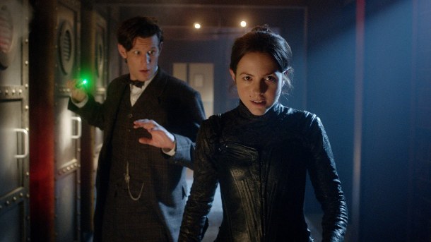 We get a Monty Python reference, a nod to previous Who companion Teagan (Janet Fielding), a classic Bond Girl, Diana Rigg, playing the villain of the piece Winifred Gillyflower, the return of Silurian Madame Vastra (Neve McIntosh), Sontaran butler Strax (Dan Starkey) and the enchanting Jenny (Catrin Stewart).