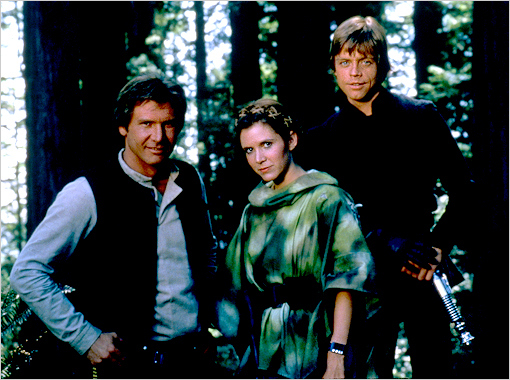 Star Wars, and its initial sequels came along at just the right moment in my life, much like many of my friends. It helped us define who we were, helped shaped my love for movies and movie-making. These were the first films I’d seen that had me wondering how they did all the things I saw on the screen, and I remember devouring issues of Starlog and books on the making of the films. Everytime we rented a video machine of any sort before we purchased a VHS player, we’d have to rent a Star Wars movie (my parents never seemed to understand it, but at least I got to watch it again!). They were also the first movies I bought when I moved out on my own, so I would have my own copies. My ipod often takes me on a journey through the musical cues of the films, and I know the movies and the music so well, I can hear the dialogue and sound effects in my head as I listen to it.