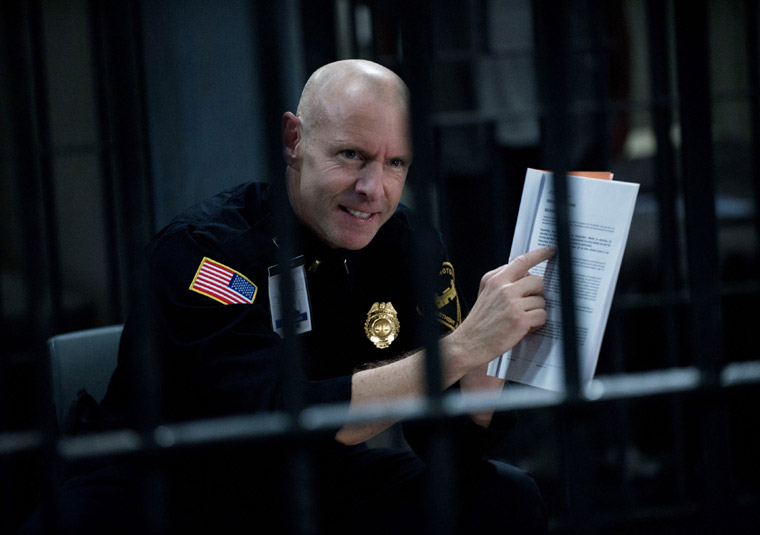 Ray Seward (Peter Sarsgaard), the man found guilty of murdering his wife in the “Picasso” case that nearly ruined Linden’s career, is now on death row awaiting execution. He wastes no time in messing with his new captors, and proving to be less than a model citizen. He asks to speak with a pastor, then bashes the man’s head against the bars when he leans in too close. Seward tricks a prison guard (Aaron Douglas!!!) into letting him make a phone call, and when asked by his lawyer to use his one remaining appeal with the Governor, Seward declines and instead asks to be executed by hanging, as opposed to lethal injection, a request which infuriates Becker (Hugh Dillon!!!), the veteran death row C.O.