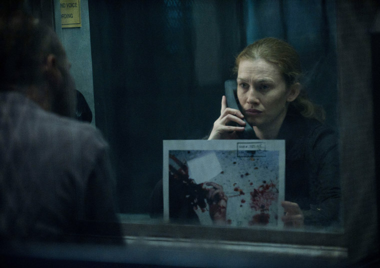 I’m babbling – there was so much in these episodes, I’m trying to get it all in! Basically, the Kwon (Keira Jang) case and the Seward case end up possibly colliding with one another at the end of the premiere. Linden decides to visit the “Picasso” kid, Adrian, to see how he’s doing with his foster family now that his father is a month away from execution for the murder of his mother. She watches him playing in the backyard for a moment with his foster mother, but decides not to talk to him directly. As she’s leaving his room, however, she spots yet another drawing of trees, almost exactly like the ones he drew when his mother died. This new one has a significant difference, however – there are buildings next to the grove of trees. Linden recognizes them as the factory where Ashley Kwon’s body was found, and goes back there to work her way through the surrounding forest. As the episode comes to a close, Linden comes across I don’t even know how many bodies in varying stages of decomposition strewn about a clearing. All of them are wrapped in dark pink biohazard sheets.