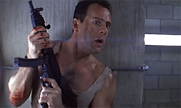 The building is locked down, no one gets in or out, and it’s up to John to try to save the day as he is by turns the hunter and the hunted as he takes the villains down one at a time. For all that, McClane is by no definition a superhero, he’s an average guy caught up in extraordinary circumstances, and as the tension builds so does his wise-ass attitude, and of course his now trademark catchphrase makes a welcome R-rated appearance.
