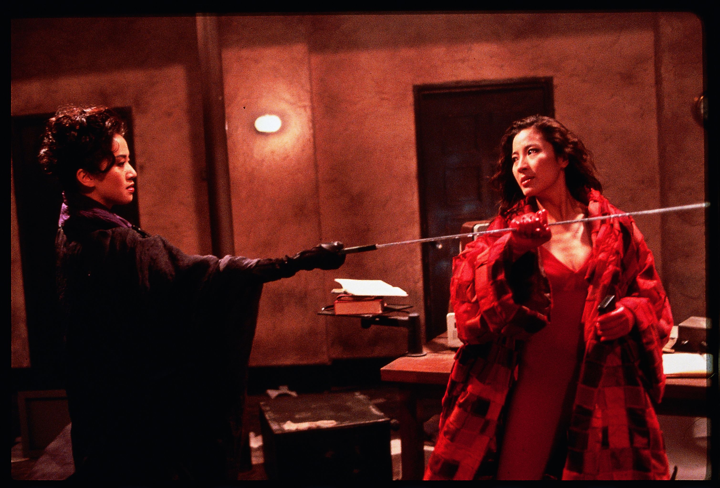 The sets and costumes (most of them at any rate) seem to be kind of reflective of the 1940s, there are long coats and fedoras, old cars, and a bit of style. Our leads however aren’t quite so fortunate… Michelle Yeoh, Maggie Cheung and Anita Mui rush about in clingy costumes, as they fight against one another and together to stop an Evil Master (Shi-Kwan Yen) who has had his servants steal newborn babies from all over town in an attempt to find one to be the new immortal emperor, the remaining children will be trained and made to be his servants.