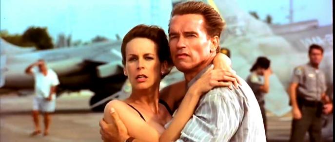 Arnold Schwarzenegger plays Harry Tasker, a member of Omega Sector, an ultra-secret agency that operates around the world. It’s so secret that his wife Helen (Jamie Lee Curtis) is laboring under the belief that her husband is a boring computer salesman, and their daughter, Dana (Eliza Dushku) can’t be bothered with either of them.