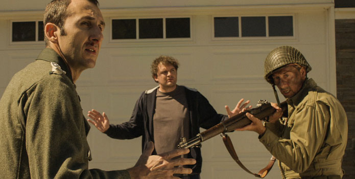Drop by Chris Goldade is my favorite from the bunch. When a WWII soldier, Frank (Jan Bos) parachutes into modern-day suburbia, sustaining a head injury when he does, he meets Barry (Darcy Johnson). Darcy, unsure of what to think of the man at first slowly begins to realize that the man has somehow arrived from the ETO of 1942… that time travel is possible. What follows is a hilarious discussion of wormholes, time travels, reading a map, and the stunning arrival of an english-speaking German soldier, the police, and the Fuhrer himself!