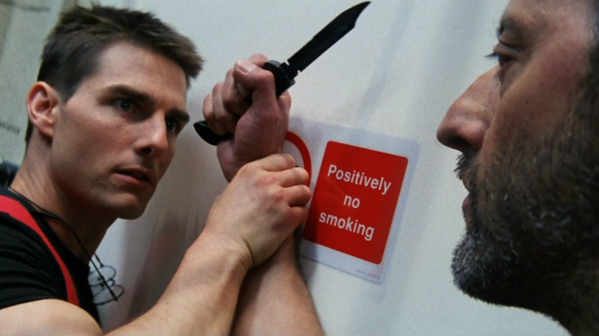 Featuring a score by Danny Elfman, incorporating that fantastic theme by Lalo Schifrin the film is a lot of fun, and lets Cruise play a super-spy, he also tends to do as many of his stunts as he can, and you can see him in the aquarium restaurant, and in the CIA break-in that it actually is him doing almost all of it.