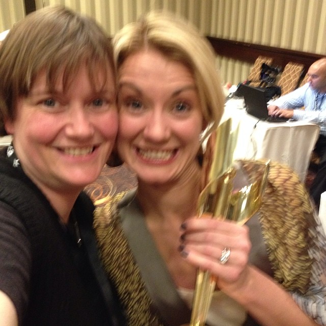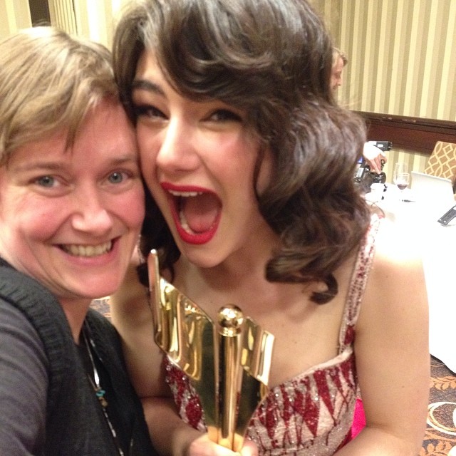 THEN Bomb Girls takes home their second award of the evening, this time for Best Achievement in Casting, and I can’t even process anything anymore. I start snapping selfies with Natalie and Katie and their awards, I babble something to Jordan as part of an elongated congratulations, and he helps by actually remembering when we first met, so that was awesome, too.