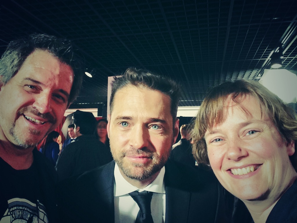 I was walking back towards Sue, after grabbing a quick drink, when I saw someone in the Media Lounge taking a moment, as he knew he had a full night ahead… I’d yet to meet him, but we’re eager to get him into the studio at some point… Jason Priestley was right there!