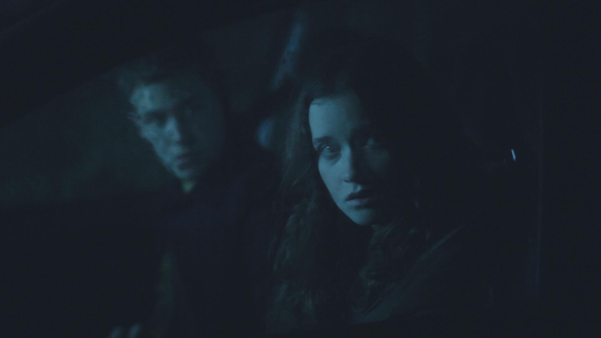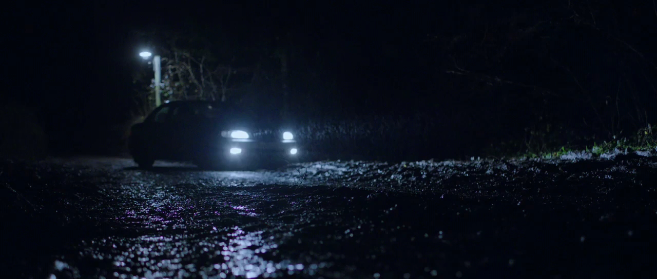 I love the cinematography, of the countryside, which rapidly descends into shadow and then all-consuming darkness as the night progresses with the lights of the car providing the only illumination, a dim candle against the surrounding black.