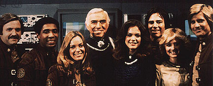 In the final episode of the series, The Hand of God, Apollo, along with Sheba (Anne Lockhart) – who is beginning to reveal her feelings for Apollo – Starbuck and Cassiopeia are in a small observation dome when they come across an unusual transmission, which viewers will recognize as the Apollo landing on the moon.