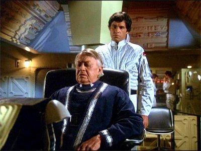 In Take The Celestra, Jim Carlson and Terrence McDonnell wrote the script based on a story concocted with David G. Phinney and David G. Arthur, which aired 1 April, 1979, honors are being given to Commander Kronus (Paul Fix) for his years of service to the Colonials, and his work with the fleet since the destruction of the colonies.