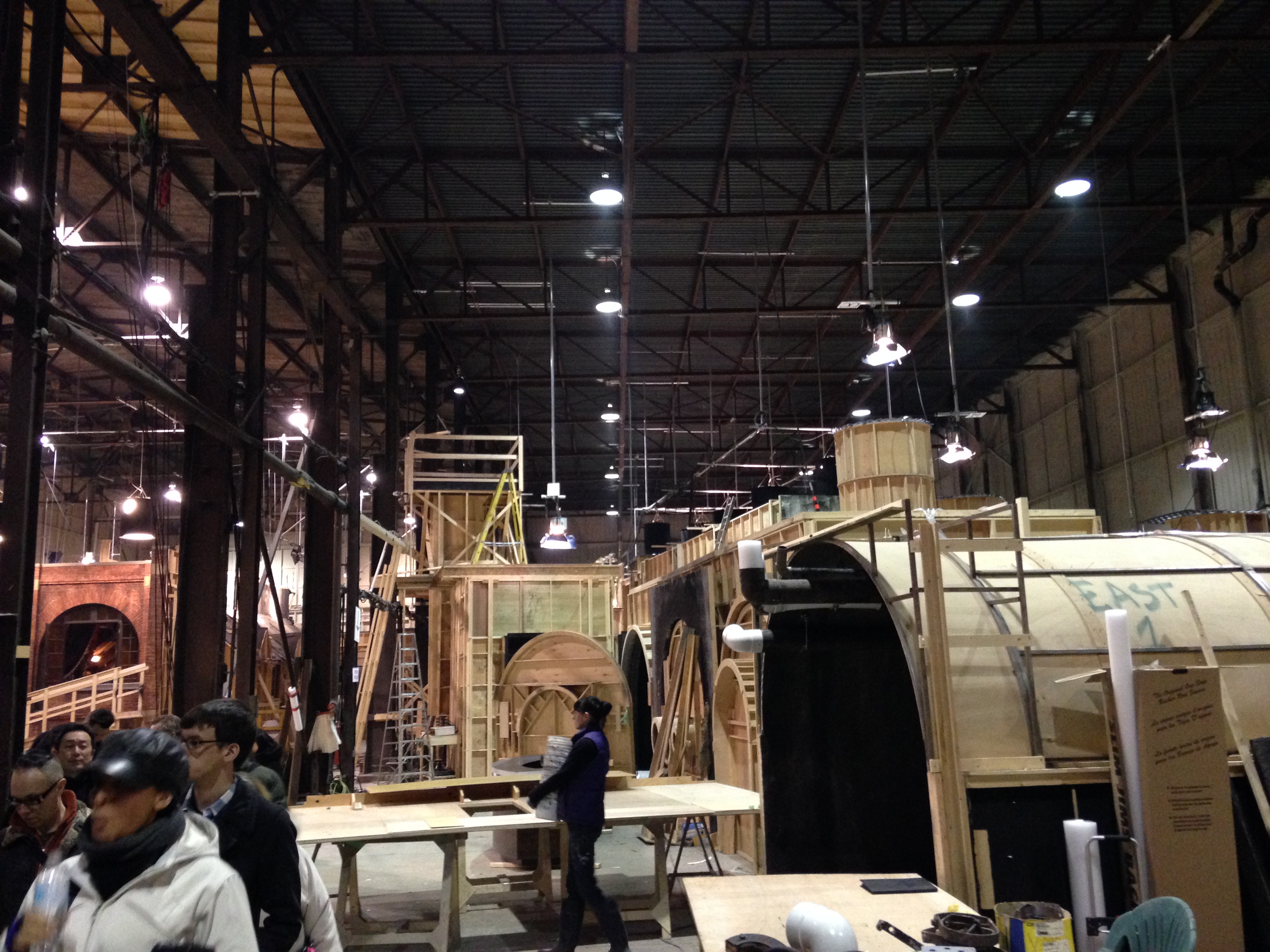 Our first stop, and the location that will be our base camp for the rest of the day, is a massive room, that has a complete housing unit from a concentration camp at one end. This is the Treblinka, 1944, set. The wooden construction contains a cramped series of stacked wooden beds inside, a dirty floor, and the imagery would be creepy and off-putting. It’s easy to imagine the area filled with forlorn, starving and shivering huddled masses that only resemble human beings in the loosest sense of the word. It would be completely upsetting, if not right outside the set’s main door, there wasn’t a huge backdrop of a modern suburban home, it’s roof and yard covered in snow, that was used for another shot. Instead of being troubling, it now transcends that to become simply absurd in its surroundings.