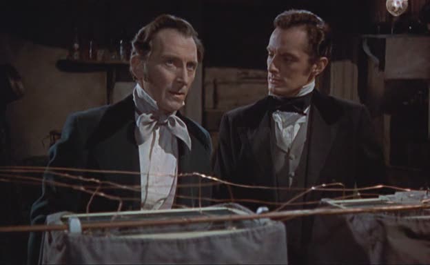 Things don’t go completely smoothly for the doctor, however. He is approached by a young doctor, Kleve (Francis Matthews) who has recognized Frankenstein. He promises his silence, though, if he can become Frankenstein’s (now living under the name Stein) pupil. An agreement is reached, and the two begin to work together in earnest.