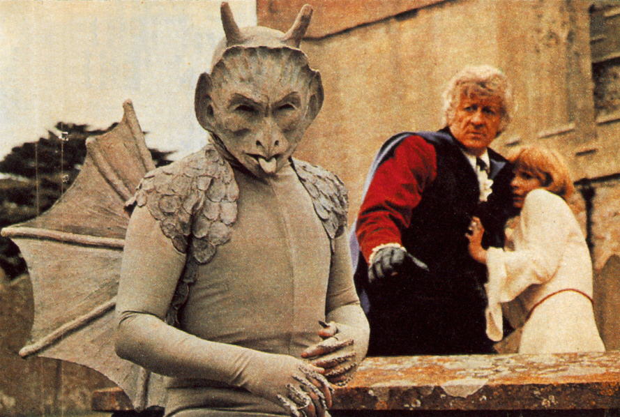 In the end UNIT arrives, destroying, eventually, a stone gargoyle that has come to life, and terrorizing the troops, the Master tries to escape, but the Doctor’s radio control of Bessie returns the devious Time Lord to UNIT’s hands, and the episode ends with the Brigadier going for a pint, while the Doctor, Jo, and the restored citizens of Devil’s End dance about the maypole (seriously).
