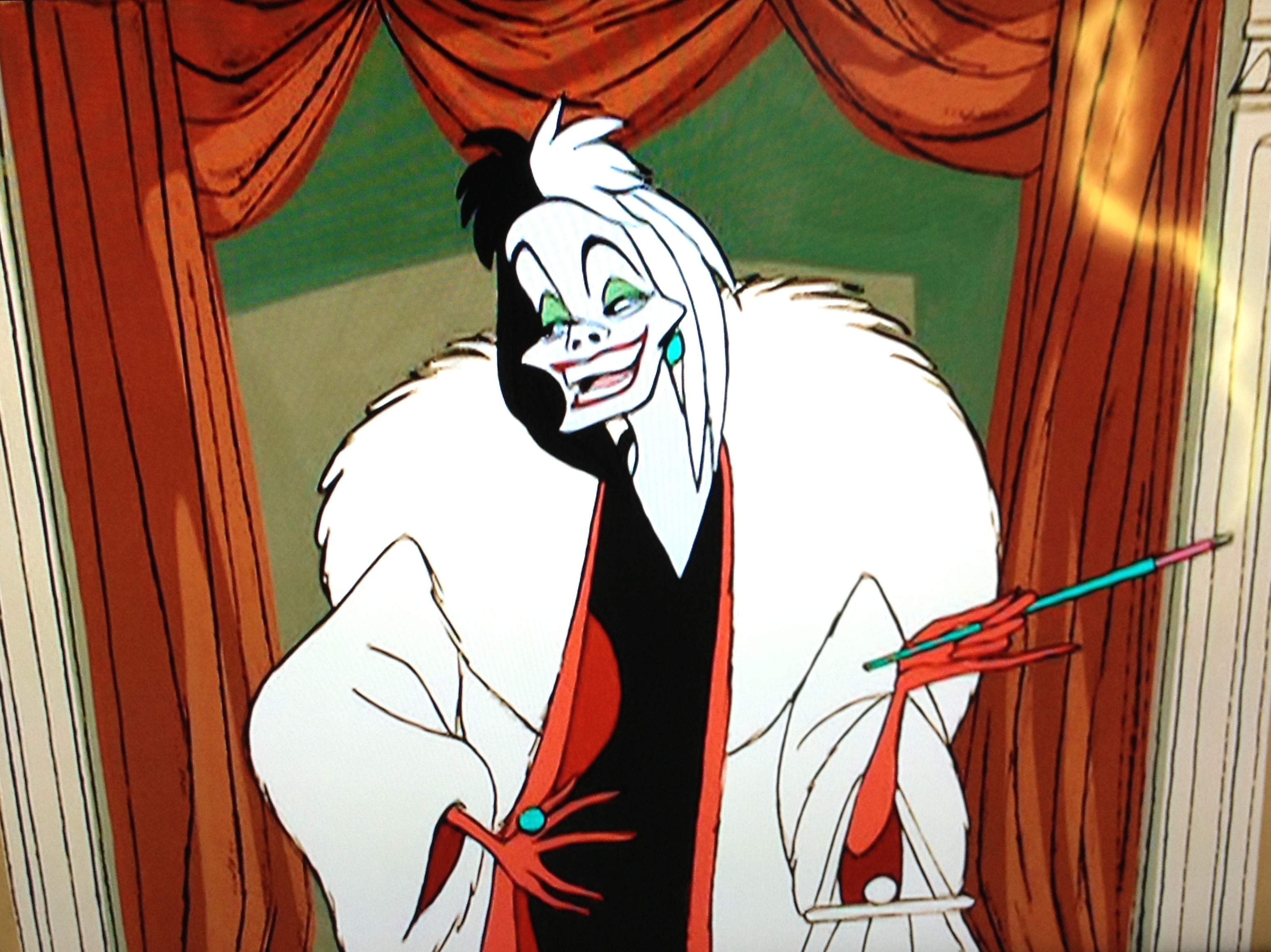He plays matchmaker, and Anita (Lisa Davis), Roger, Perdita and himself settle in together, and it’s not long after when Perdy becomes pregnant. Cue entrance of yet another iconic Disney villain, the cadaverous, dastardly, fur-loving fashionista, Cruella De Vill (Betty Lou Gerson) – who has her own theme song! and is one of only two songs in the entire film.