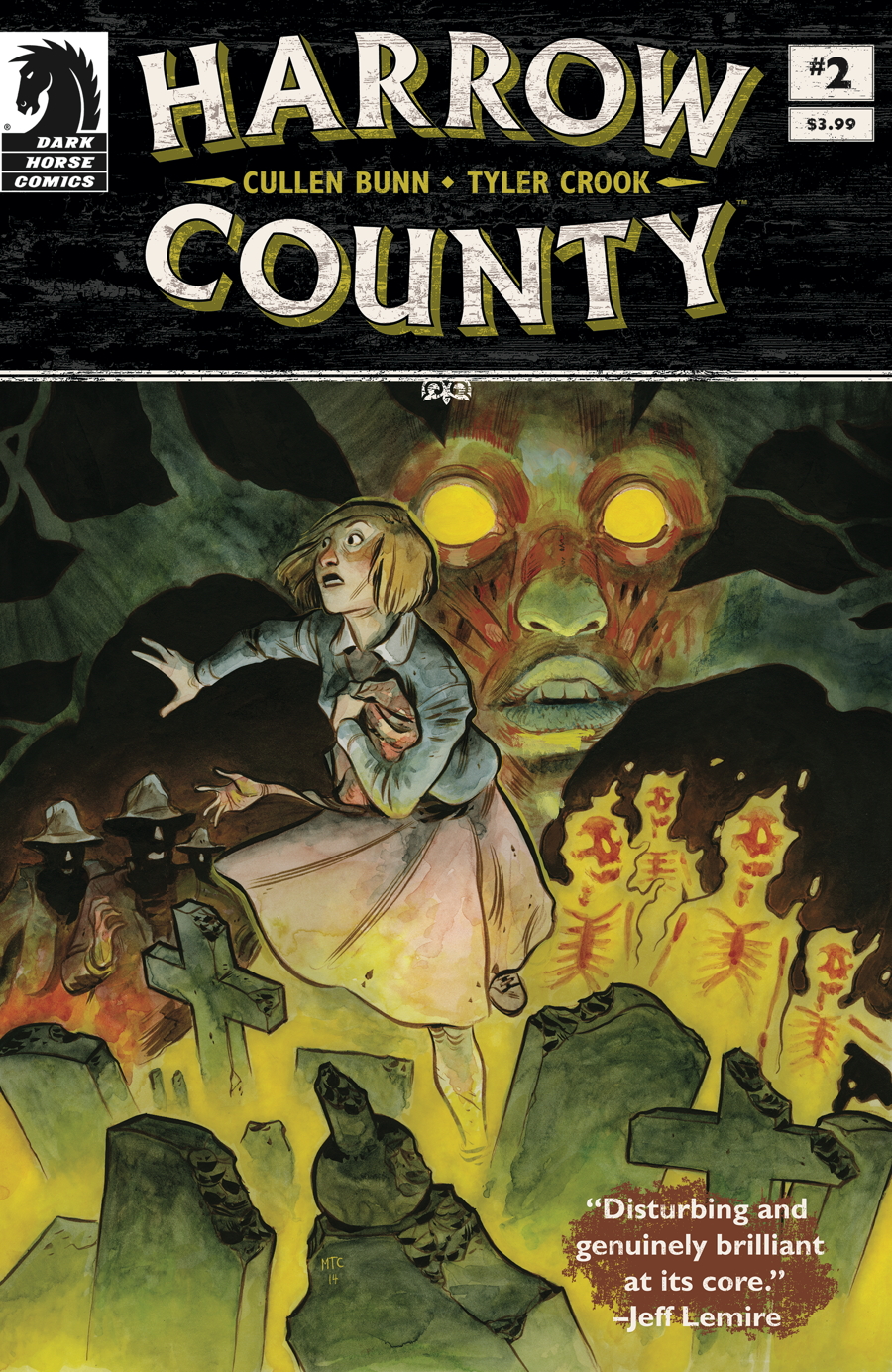 Harrow County Issue 2. This tale from writer Cullen Benn, with arts and letters by Tyler Crook just gets creepier as it progresses, with the haint in her possession, young Emmy hears the towns people, including her father, gathering at the old tree on her property, to discuss the past, and the seemingly unavoidable future for young Emmy.