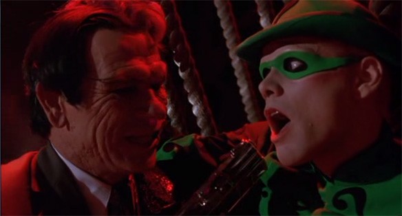 A terrible plot, some horrific acting on behalf of some day players, horrendously cheesy dialogue and way too many gadgets (and let’s not forget, nipples on the bat suit, and a bat suit butt shot), this film is rancid. And Carrey seems to suffer the worst of it in terms of the costuming, by film’s end he looks Dame Edna.