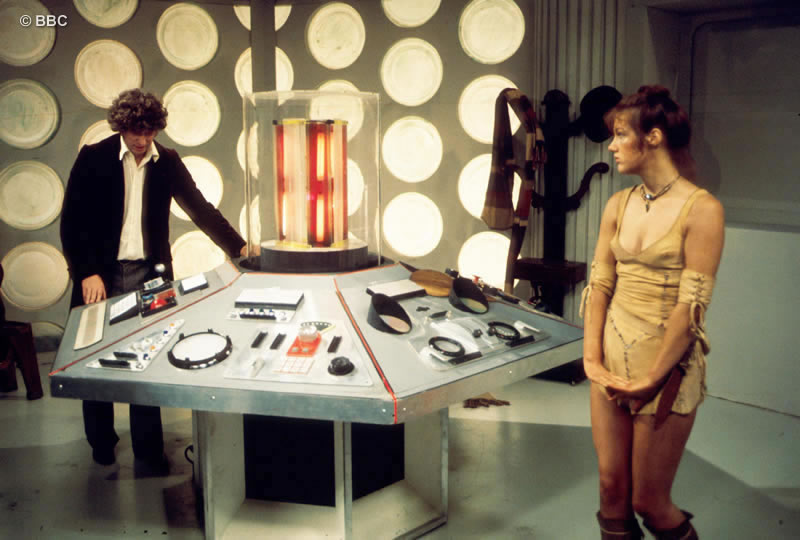 The story, when we join Leela (Louise Jameson) and the Doctor (Baker) has the two having a fun exchange as the work on the robotic K9. Leela points out that she should be able to call K9 he, since the Doctor refers to the TARDIS as she.
