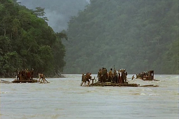 It is the 16th century, and Klaus Kinski portrays Don Lope de Aguirre, who is a member of a Spanish Conquistador expedition into the South American jungle in search of El Dorado. They leave the primary group to set off in search of the fabled golden city, but once they have travelled far enough, in Don Lope’s opinion, he seizes control of the group, and leads them himself, despite his rage, and glimmers of insanity.