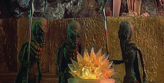 The story is fun and most of the special effects work, most. The stop-motion used does a fairly nice job, and you can forgive the man-in-a-suit aspect of some of the aliens, especially when you can see masks flapping, or not sitting right on the performer’s head.