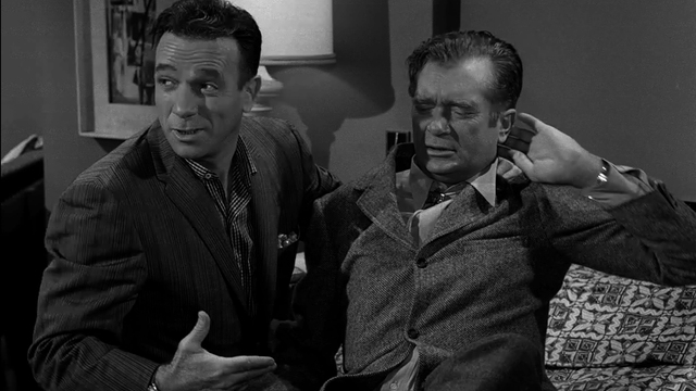 This ends up being a rather lonely story of a man trapped in his nostalgia, unhappy with where he is, and he takes out that anger on those around him. He strikes out at the only woman he ever loved, Vinnie (Carmen Matthews), and it is she who sees the connection between the broadcasts and Ed.