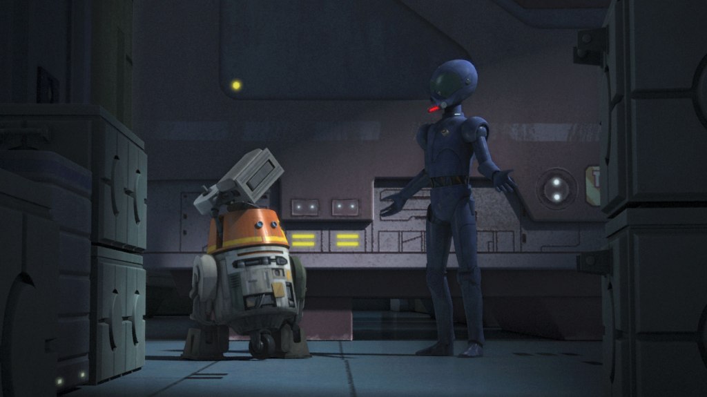 Written by Matt Michnovetz this episode first debuted on 16 March, 2016, and follows the droid, C1-10P or Chopper (voiced by one of the series creators Dave Filoni) as he attempts to steal a new leg for himself. When that fails, he finds himself aboard an Imperial ship and finds an unexpected friend and ally in an Imperial inventory droid, AP-5 (Stephen Stanton).