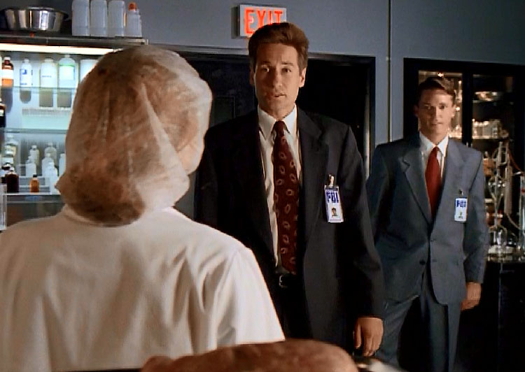 The episode also introduces Mulder’s new partner, Alex Krycek (Nicholas Lea), who surprises Mulder by willing to believe his new partner’s hunches about the paranormal.