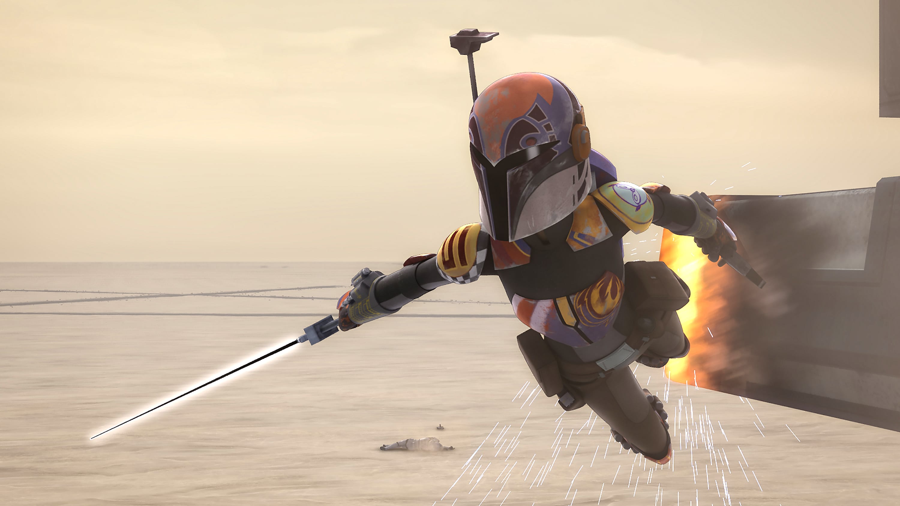 As things progress, Sabine recognises who should really lead the Mandalorian people in their fight against the Empire, and consequently who should carry the darksaber, which she discovered last season.