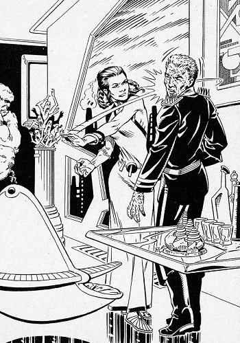 Meanwhile, Zorba the Hutt, Jabba’s father has returned to Tatooine to see his son, only to learn of his death at the hands of Princess Leia. He vows vengeance, and sets off in search of her. His search brings him to Bespin, where Han is holding a gathering at his new home.