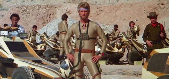 I haven’t watched this movie since coming across it as a kid during a SuperChannel preview (man those were the days huh?). And re-watching it now, I’m struck by one thing, Megaforce is a pendulum, it’s bad, it’s so bad it’s good, and then it’s back to bad again. This is a terrible film, and yet I couldn’t stop watching it. Atrocious acting, horrible special effects, and costume design by a toy company… Mattel.
