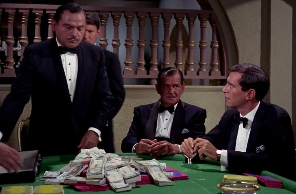 Using Malif and Cinammon (Barbara Bain) as a distraction to win away the casino’s money, Rollin uses their gains as a stake in baccarat, using marked cards that only he and the prince can read.