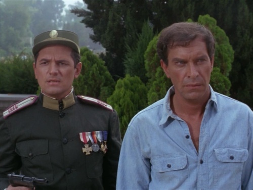 Rollin (Martin Landau) is advised by Dan (Steven Hill) to escape from the Eastern Bloc prison on his own, after they learn that the elderly, imprisoned Cardinal (Cyril Delevanti) has been moved to solitary. But that’s just so Dan can pose as a colonel, capture him, and take him back into the prison, so they can both conduct the breakout, while the rest of the team, still posing as a circus, provides distraction.